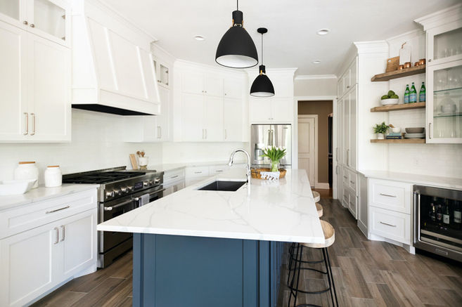 Lovers of a clean, white and navy palette with a nod to the East Coast, our clients requested a highly functional kitchen that was both intentional and useful without sacrificing design. We opened up this kitchen, creating an inviting space that is welcoming to guests and conducive to their family lifestyle.